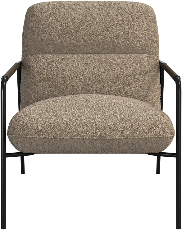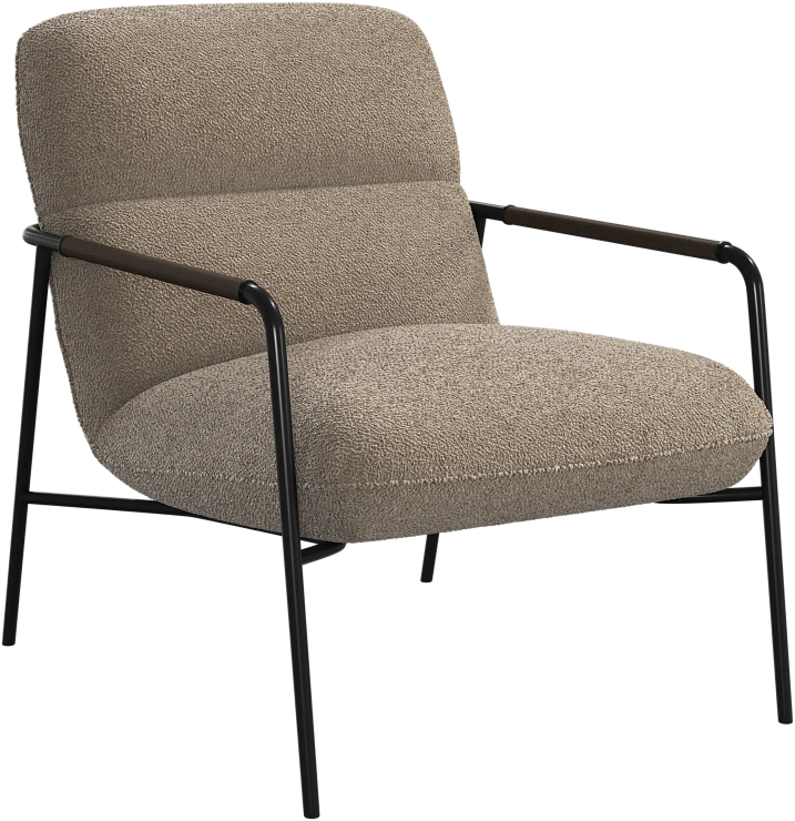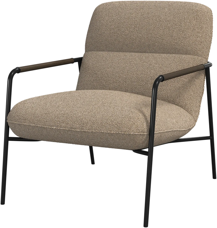 Матовая чёрная рама и дубовые подлокотники подчёркивают лаконичный дизайн и добавляют ему тёплый, натуральный акцент.