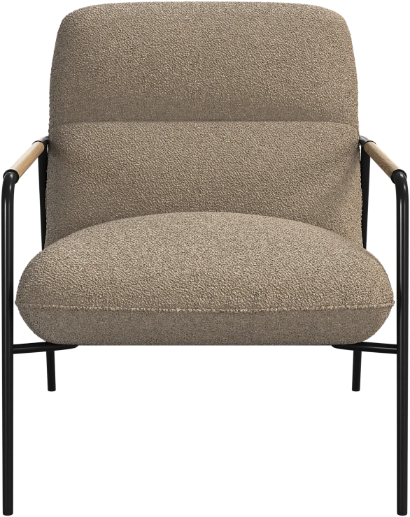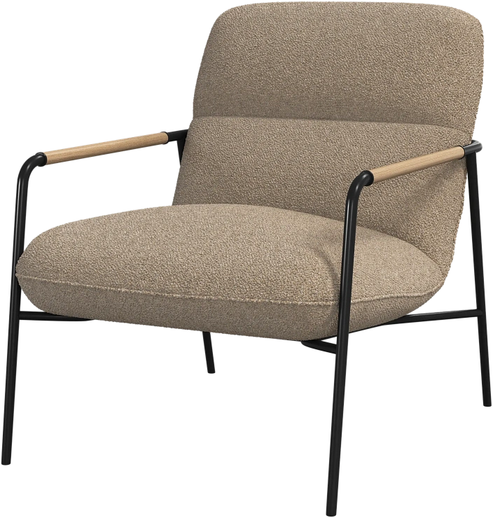 Матовая чёрная рама и дубовые подлокотники подчёркивают лаконичный дизайн и добавляют ему тёплый, натуральный акцент.