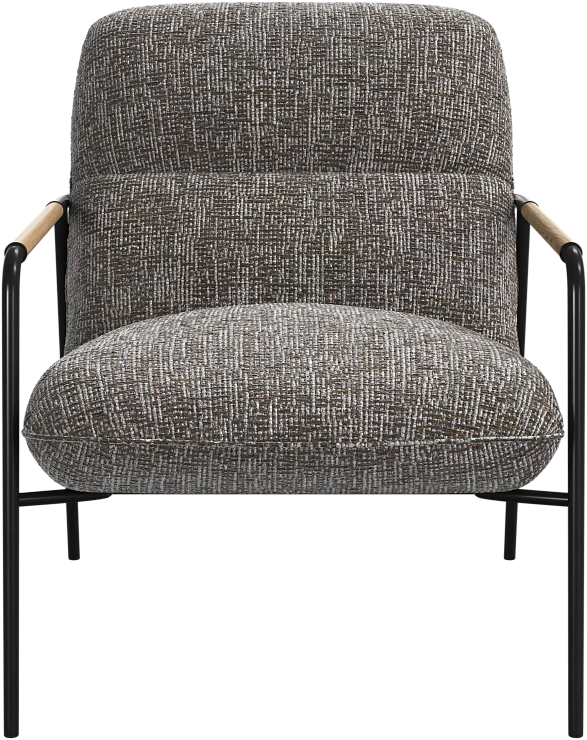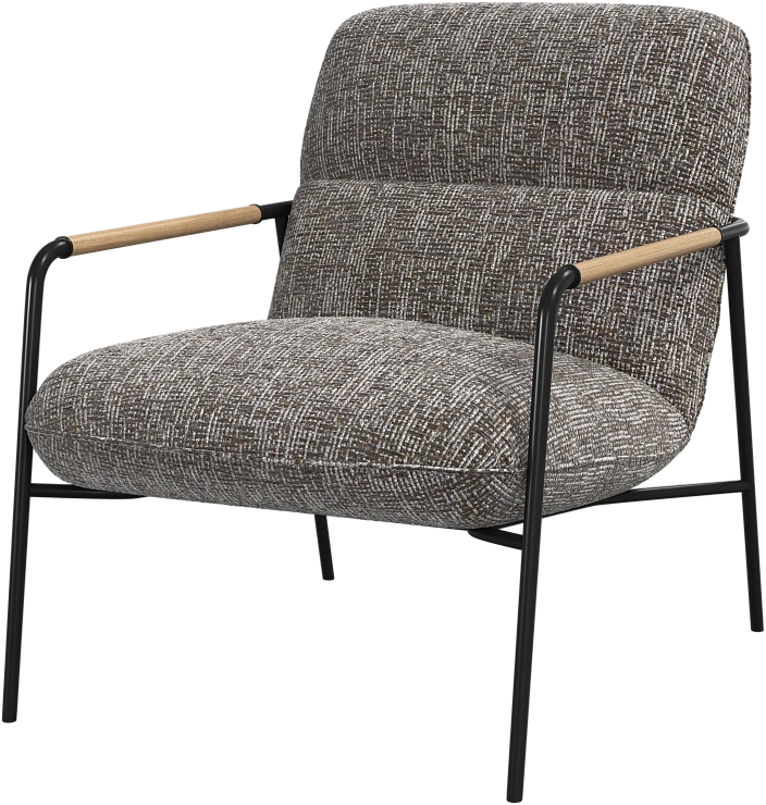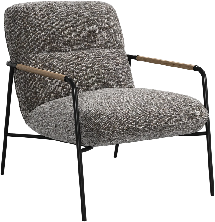 Матовая чёрная рама и дубовые подлокотники подчёркивают лаконичный дизайн и добавляют ему тёплый, натуральный акцент.