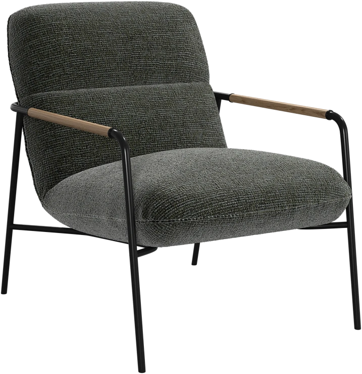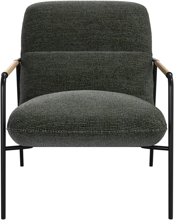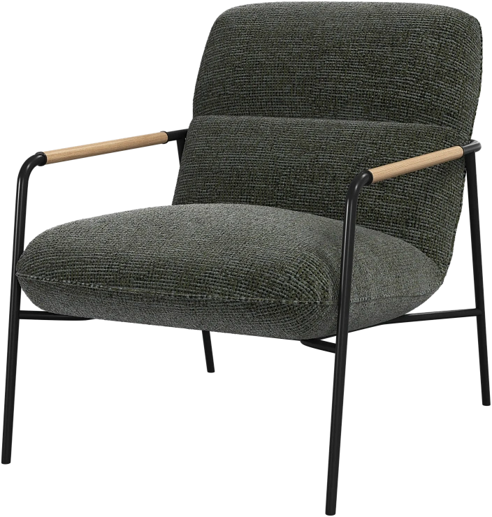 Матовая чёрная рама и дубовые подлокотники подчёркивают лаконичный дизайн и добавляют ему тёплый, натуральный акцент.