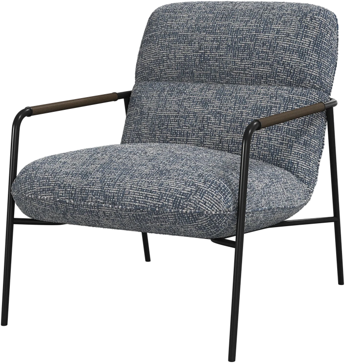 Матовая чёрная рама и дубовые подлокотники подчёркивают лаконичный дизайн и добавляют ему тёплый, натуральный акцент.
