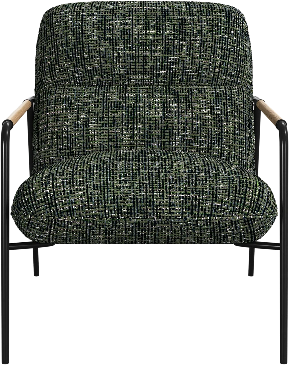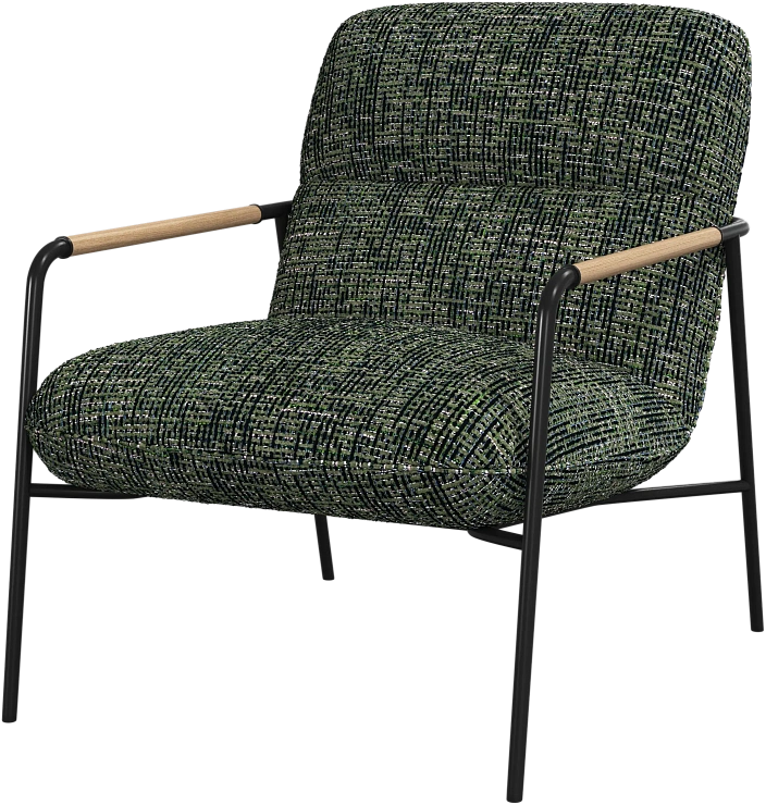 Матовая чёрная рама и дубовые подлокотники подчёркивают лаконичный дизайн и добавляют ему тёплый, натуральный акцент.