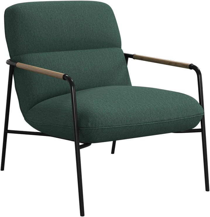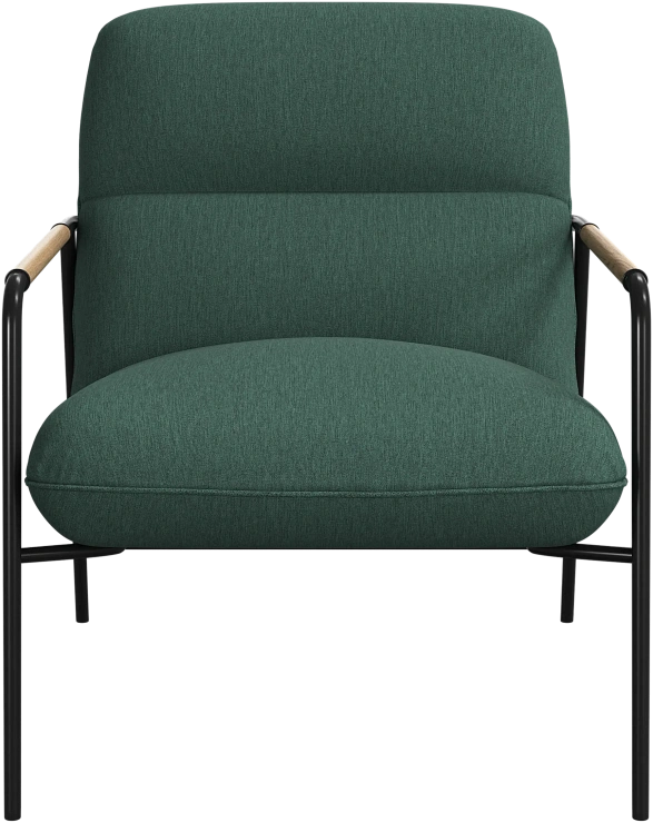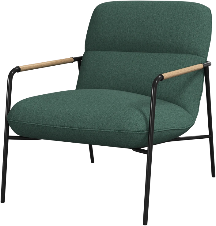 Матовая чёрная рама и дубовые подлокотники подчёркивают лаконичный дизайн и добавляют ему тёплый, натуральный акцент.