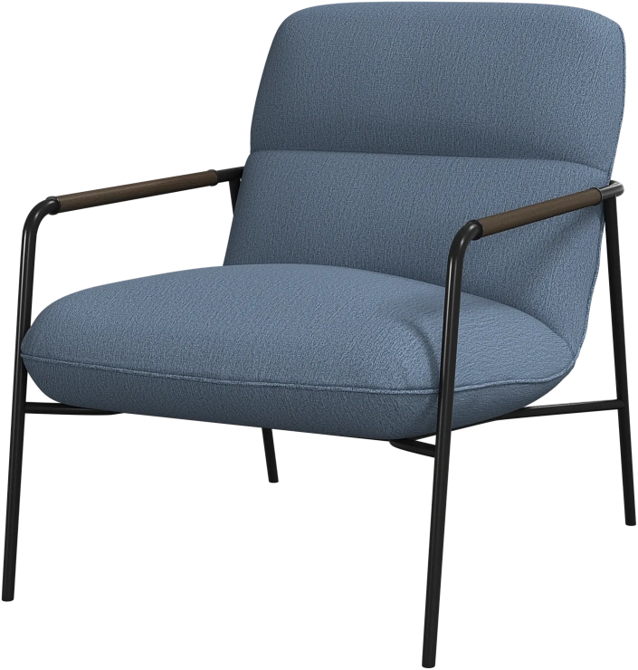 Матовая чёрная рама и дубовые подлокотники подчёркивают лаконичный дизайн и добавляют ему тёплый, натуральный акцент.