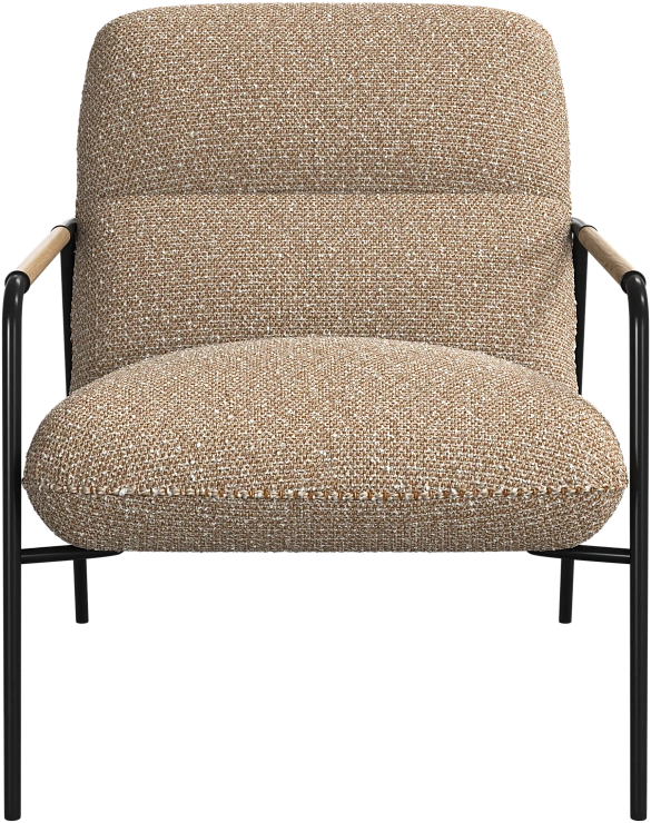 Матовая чёрная рама и дубовые подлокотники подчёркивают лаконичный дизайн и добавляют ему тёплый, натуральный акцент.