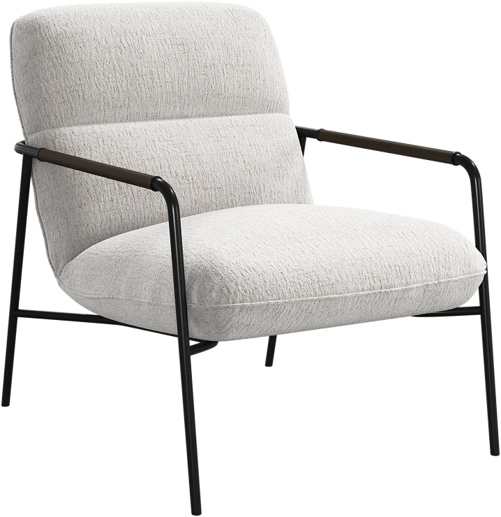 Матовая чёрная рама и дубовые подлокотники подчёркивают лаконичный дизайн и добавляют ему тёплый, натуральный акцент.