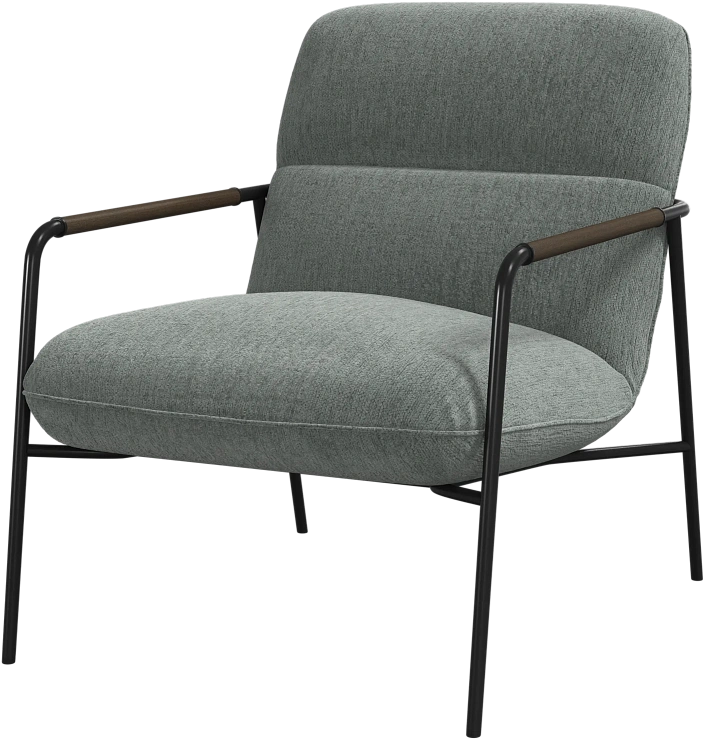 Матовая чёрная рама и дубовые подлокотники подчёркивают лаконичный дизайн и добавляют ему тёплый, натуральный акцент.