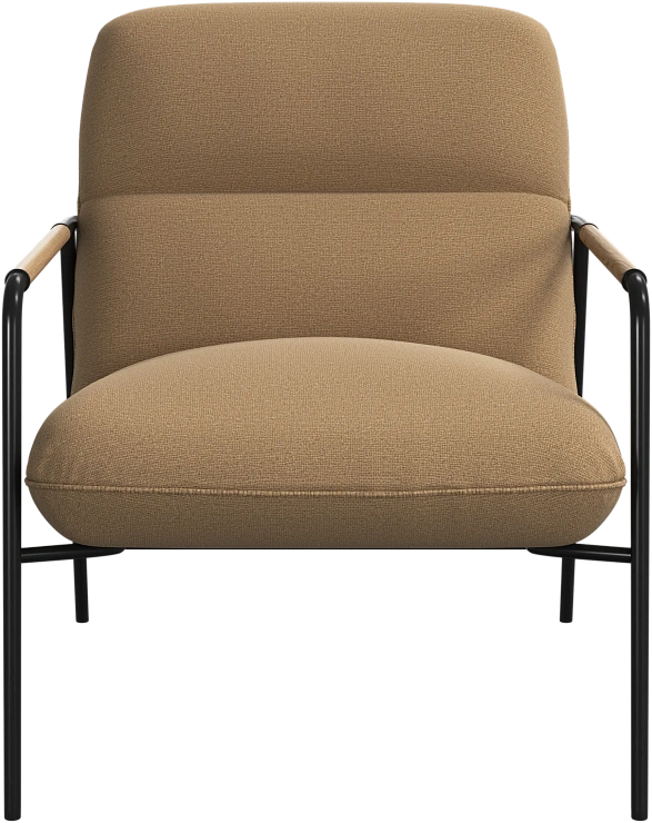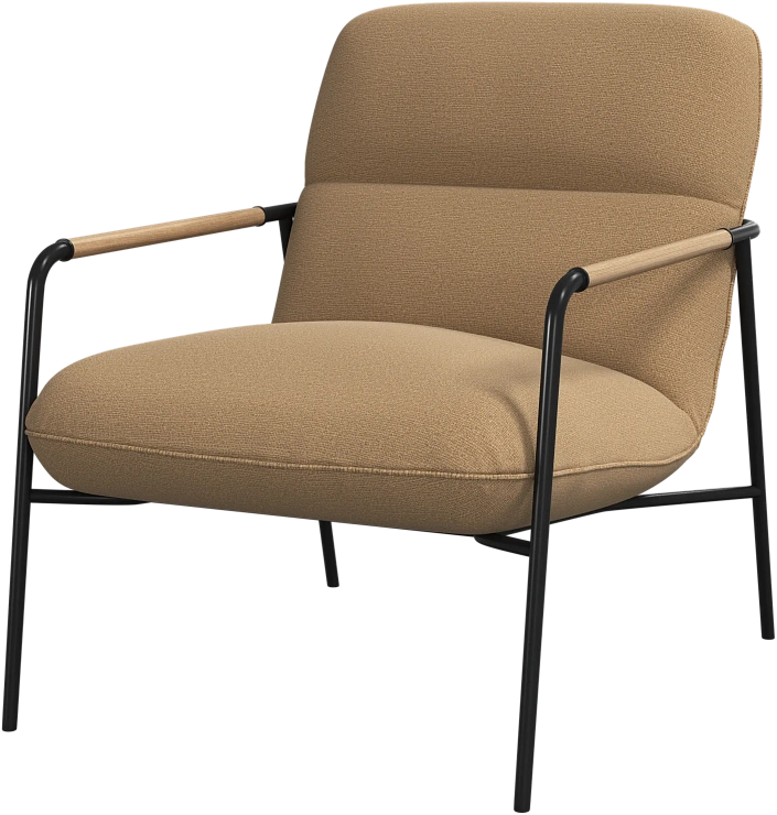 Матовая чёрная рама и дубовые подлокотники подчёркивают лаконичный дизайн и добавляют ему тёплый, натуральный акцент.