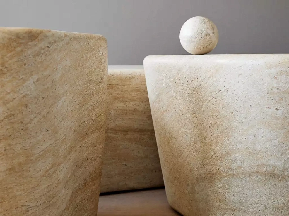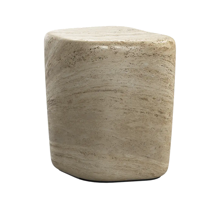 Мебель изготовлена из бетона и покрыта имитацией травертина, в которой узоры и текстуры натурального травертина воспроизведены с неимоверной точностью.