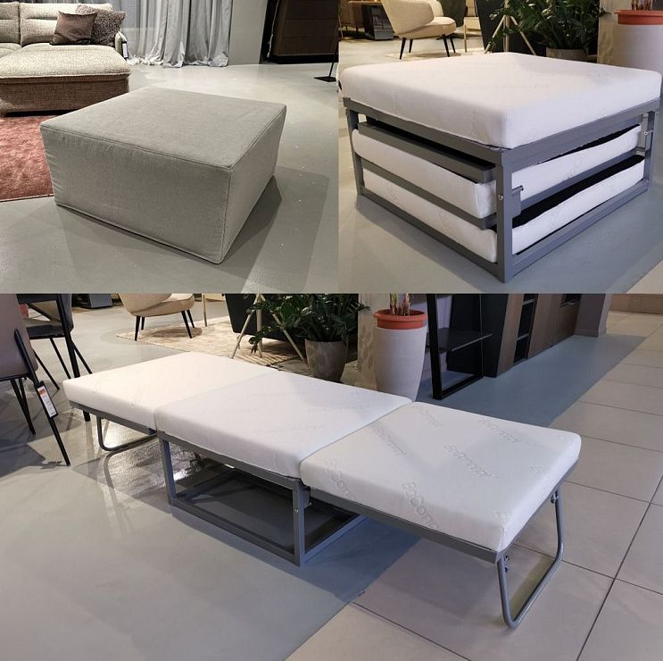 Пуф Xtra оснащен складным механизмом. Эта полезная функция позволяет пуфу превращаться в дополнительную кровать, занимая при этом очень мало места.